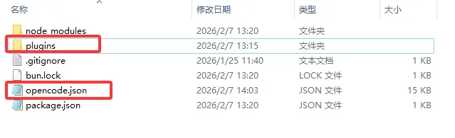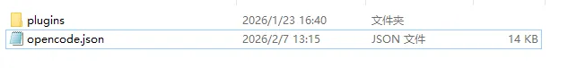 opencode.json与plugins目录复制到 OpenCode 的配置文件夹