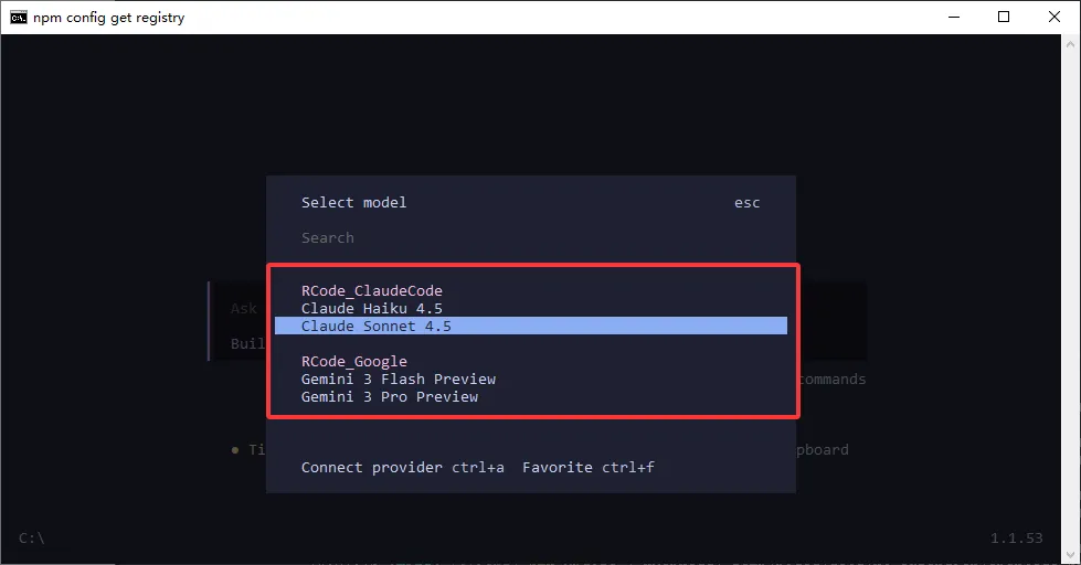 opencode,再使用/models命令查看配置是否成功