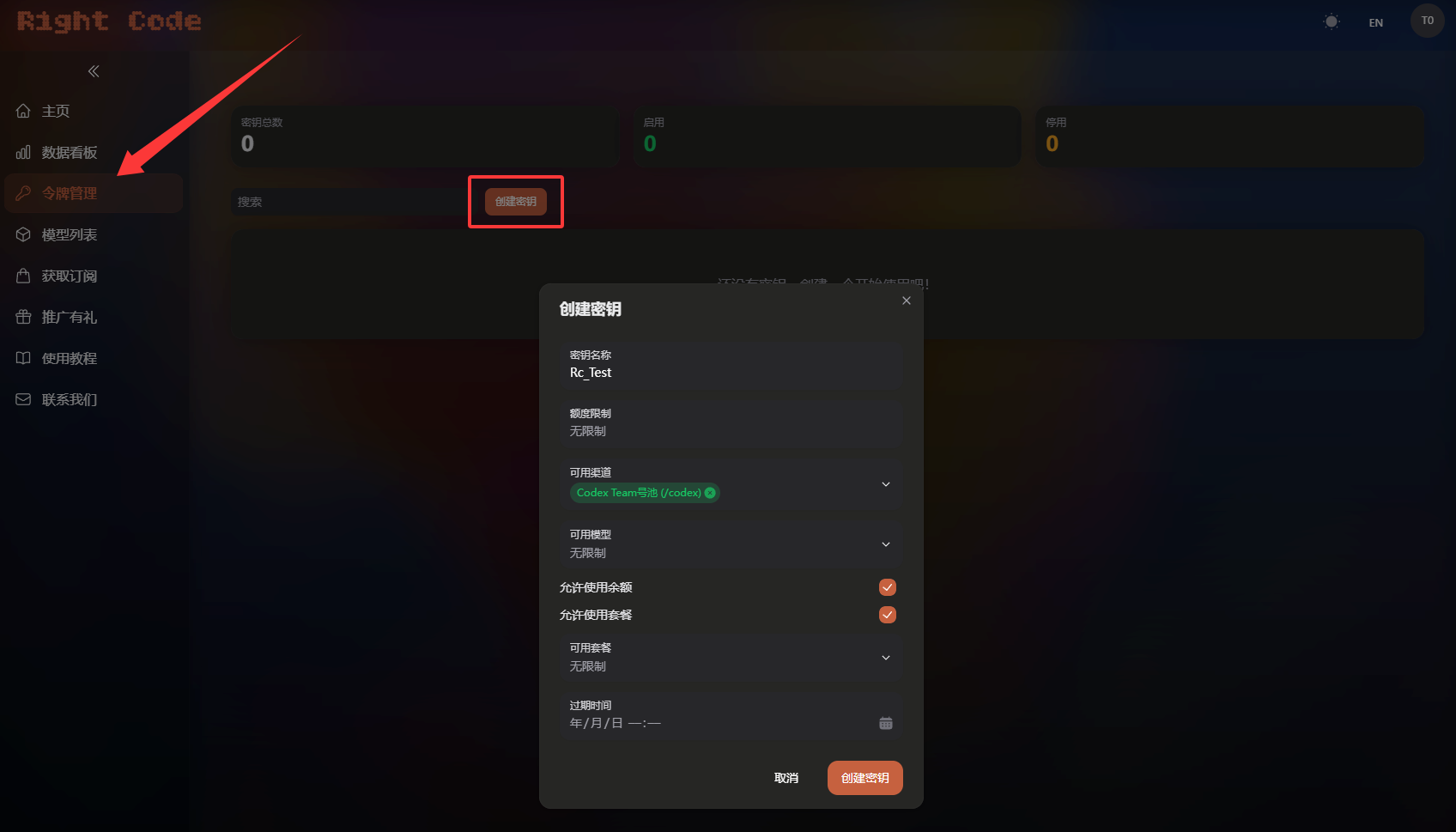 令牌管理一栏如图,点击